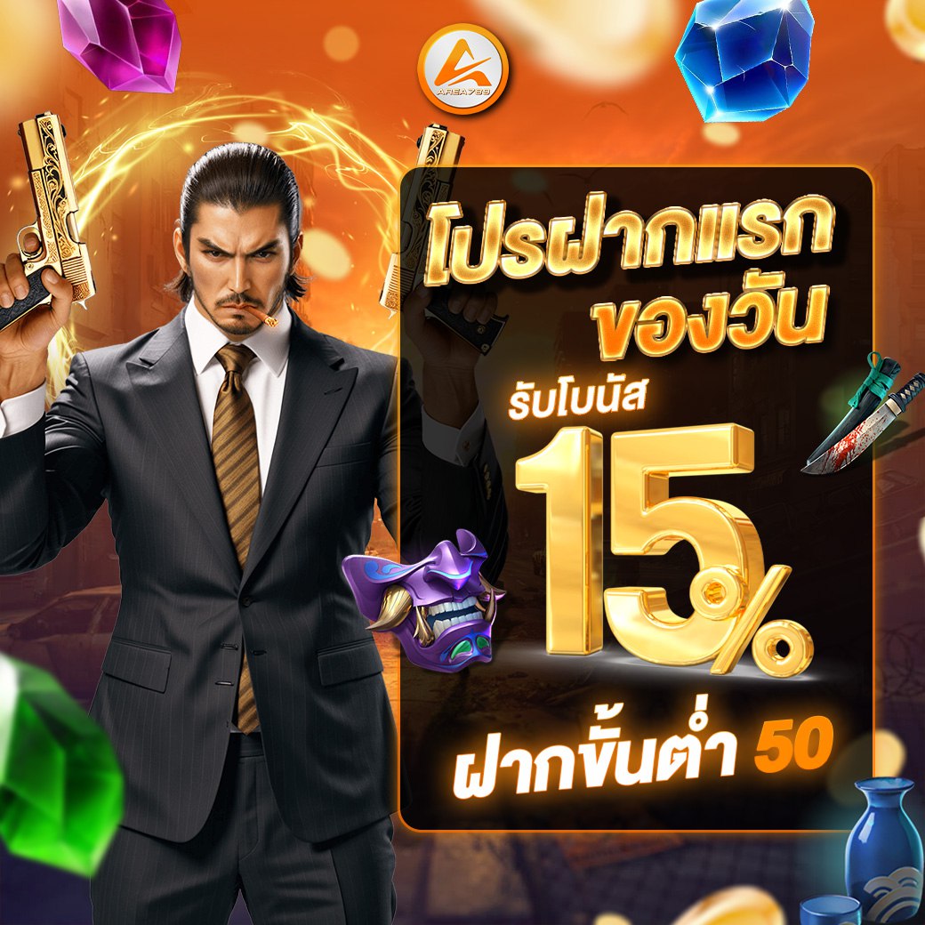 โปรโมชั่นแรกวัน 15% ✔️ ฝากรับโบนัสขั้นต่ำ 50 บาท ✔️ ฝากรับโบนัสสูงสุด 5,000 บาท เงื่อนไขโปรโมชั่น ทำยอดขั้นต่ำ 2 เท่า ถอนสูงสุด 100 เท่า ตัวอย่างเช่นฝาก 100 รับเพิ่ม 15 บาท ทำยอดขั่นต่ำ 230 ถอนได้สูงสุด 10,000 เครดิตที่เหลือตัดออกหมด รับโปรโมชั่นเล่นสล๊อตกับยิงปลา รับโบนัส วันนั้นจะไม่ได้รับยอดเสีย ✔️กดรับโปรโมชั่นได้ที่หน้าเว็บ